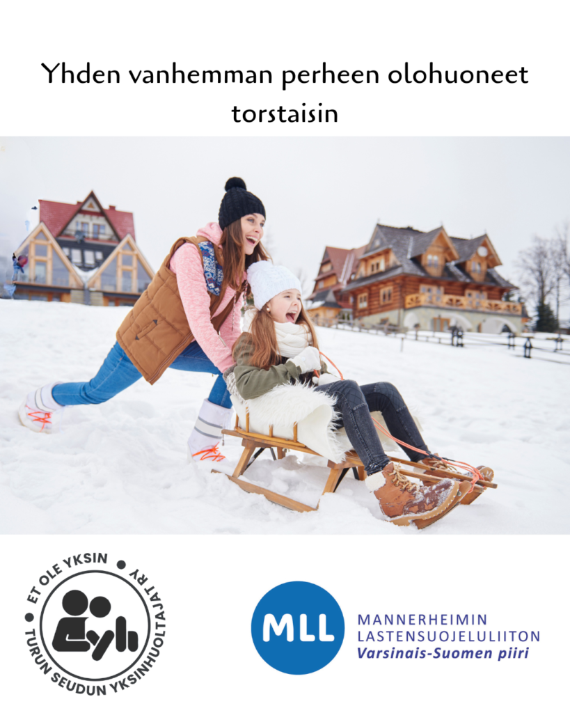 Tervetuloa yhden vanhemman perheiden vertaisolkkariin, jossa voit jutustella muiden vanhempien kanssa lasten leikkiessä vieressä Luvassa rentoa yhdessäoloa, leikkejä, keskustelua, kahvittelua sekä pientä naposteltavaa. Olohuoneet järjestetään yhteistyössä MLL:n kanssa Avoin kohtaamispaikka satelliitti Sipilänkuja 2, Raisio 50 Yhden vanhemman perheiden olohuoneet Raisiossa Perjantaisin 7.11 ja 5.12 klo 16.30-19.00 Osallistuminen ja ehdot Tapahtuma on avoin kaikille, ei edellytä jäsenyyttä. Tervetuloa tutustumaan toimintaamme! Ilmoittautumalla tapahtumaan hyväksyt yhdistyksen toimitusehdot ja tietosuojaselosteen. Lisätiedot ja tiedustelut turunyh[a]gmail.com 044-358 8599 (tekstiviesti/Whatsapp) EDELLINEN TAPAHTUMASEURAAVA TAPAHTUMA